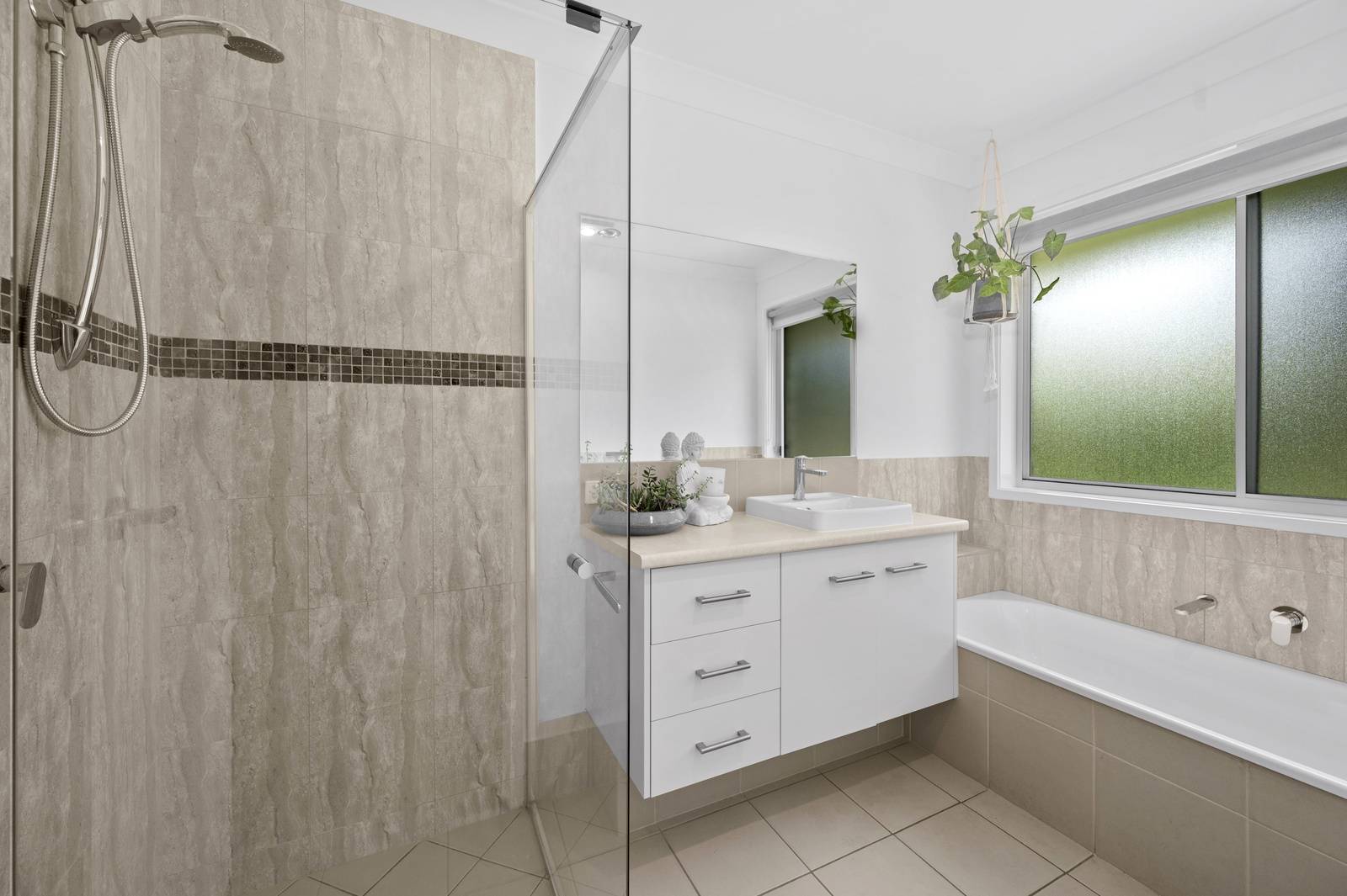 The front 3 bedrooms are great size, with built in robes and ceiling light fans. The family bathroom is modern in style and has a separate toilet.