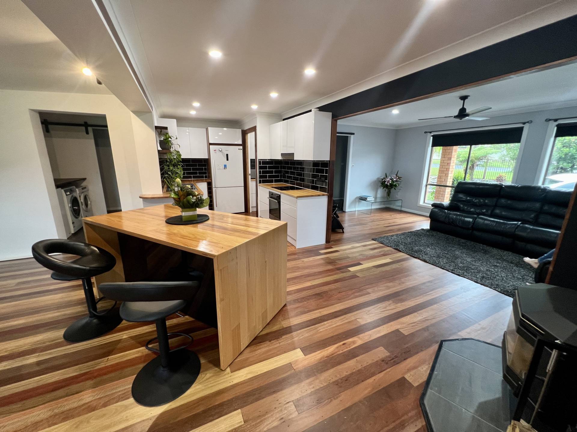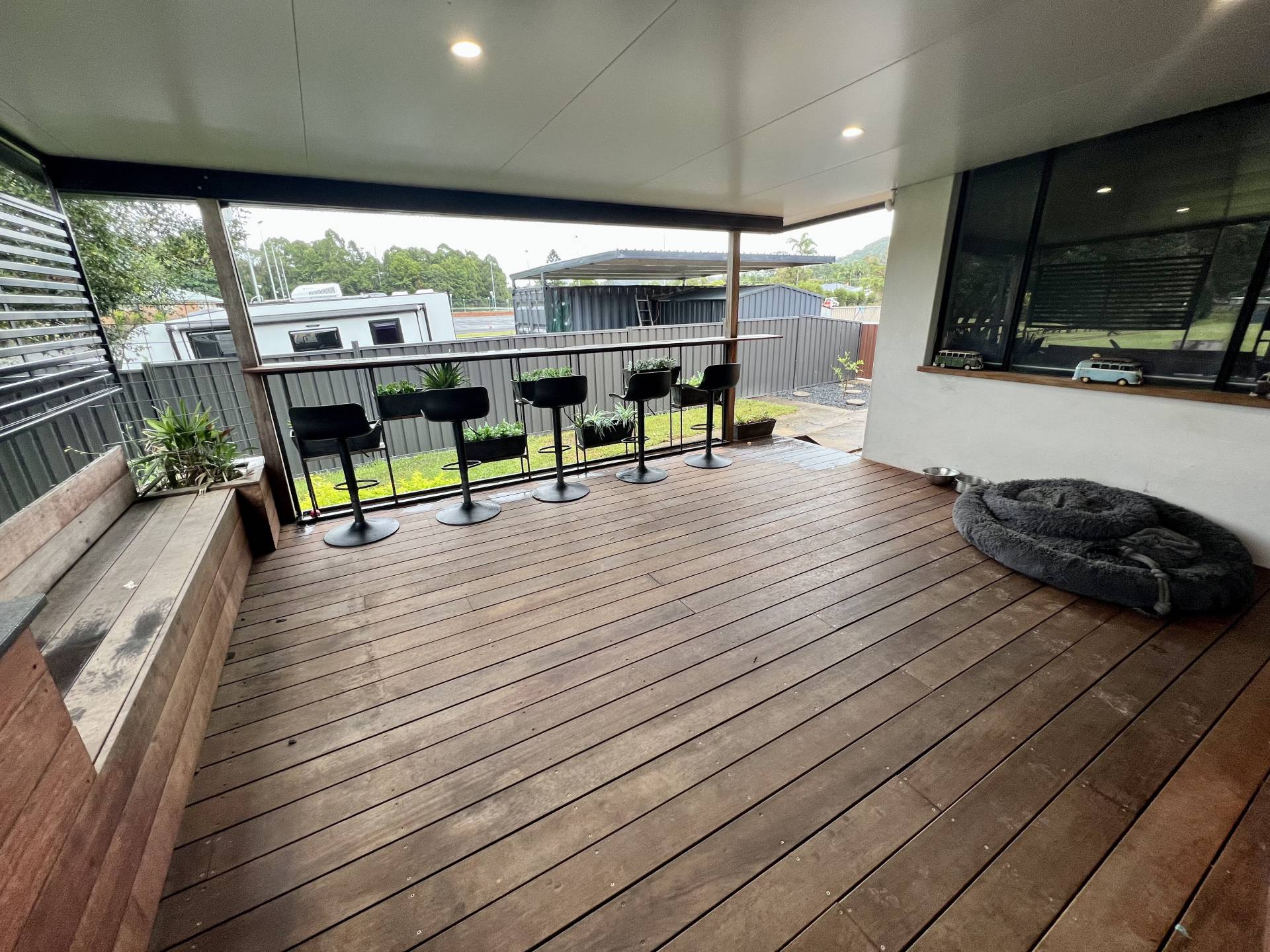 From the main living space enjoy a view over your back covered entertaining area over to the Netball courts.