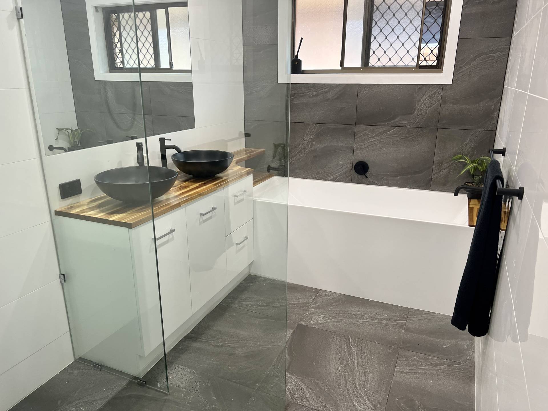 Master bathroom is newly renovated and features a deep bath plus a shower. Separate toilet with hand basin is down the hall.