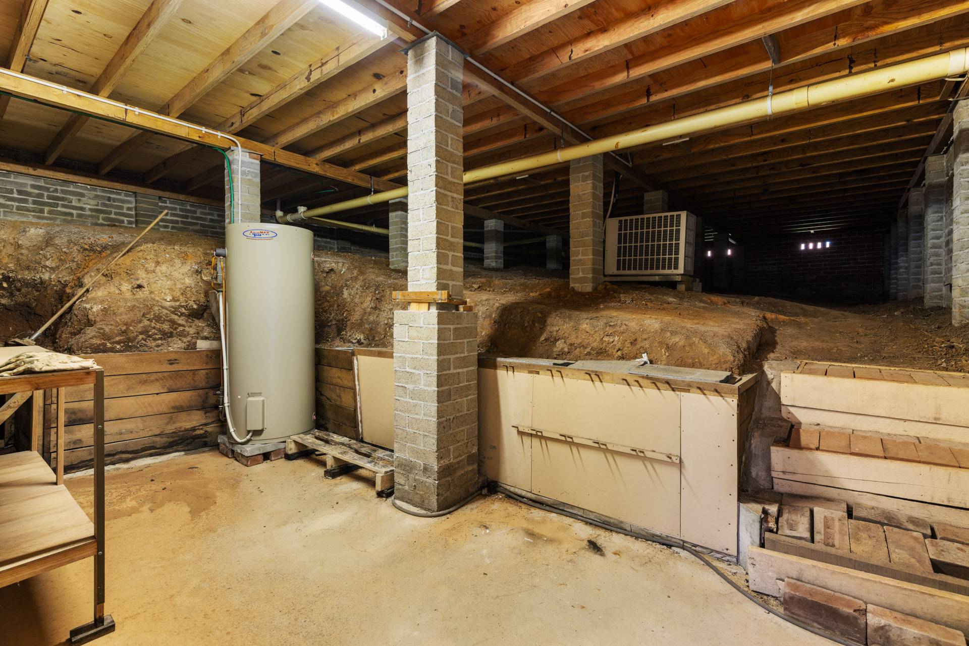 There is a massive garage and workshop with under house storage.