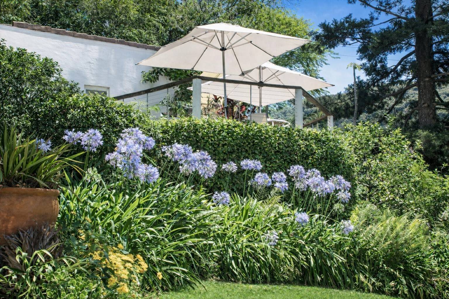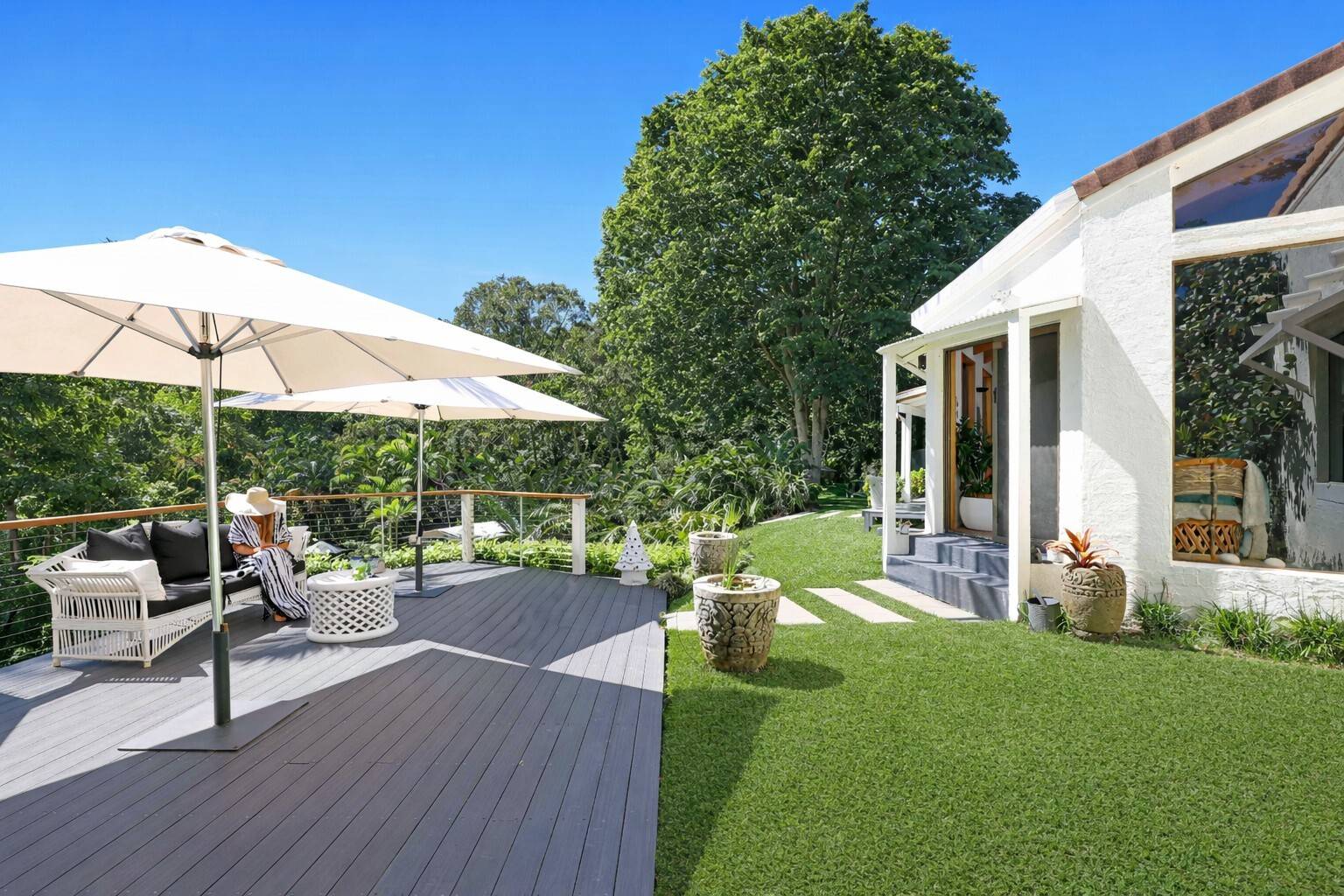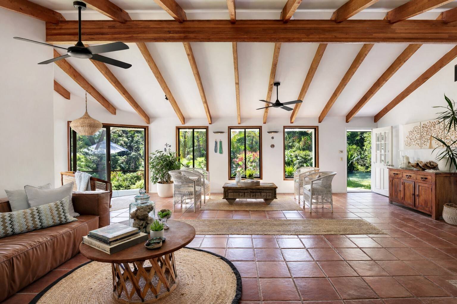 From the moment you arrive, the home captivates. Expansive open-plan living and dining areas flow effortlessly to breath-taking garden vistas. Italian and Mexican terracotta tiles add warmth and character, while the generous proportions provide both comfort and sophistication.