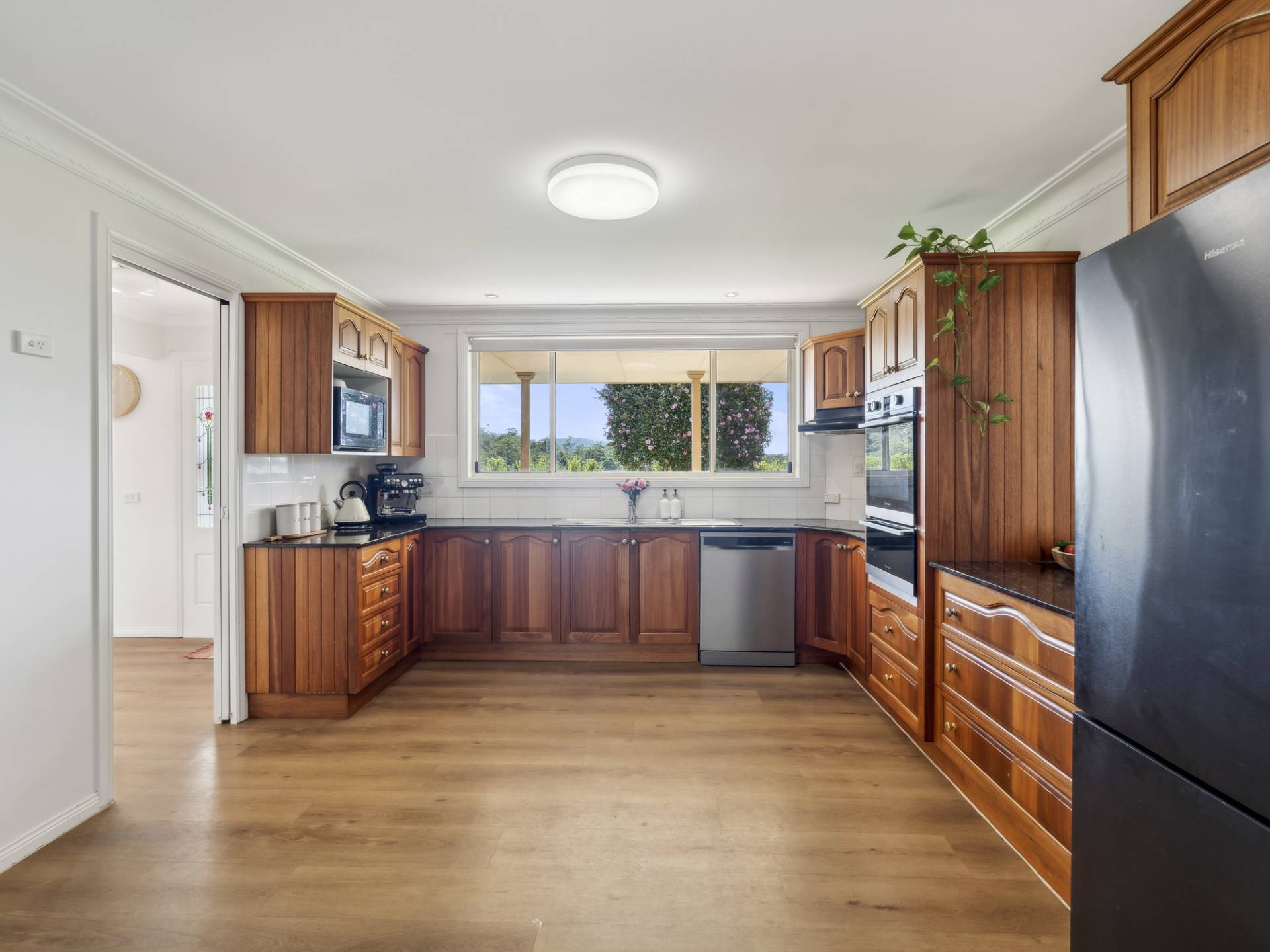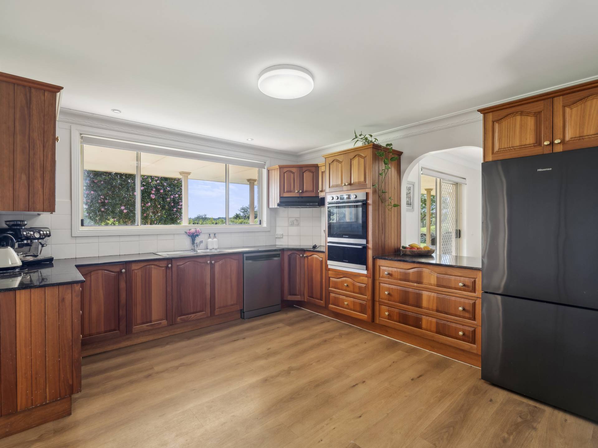 Flowing from the living area is the spacious timber kitchen with gorgeous granite benchtops, Westinghouse appliances and a large walk-in pantry, this area is the centre hub of the home and flows into a beautifully bright sitting area that could double as a formal dining room if you so desired.