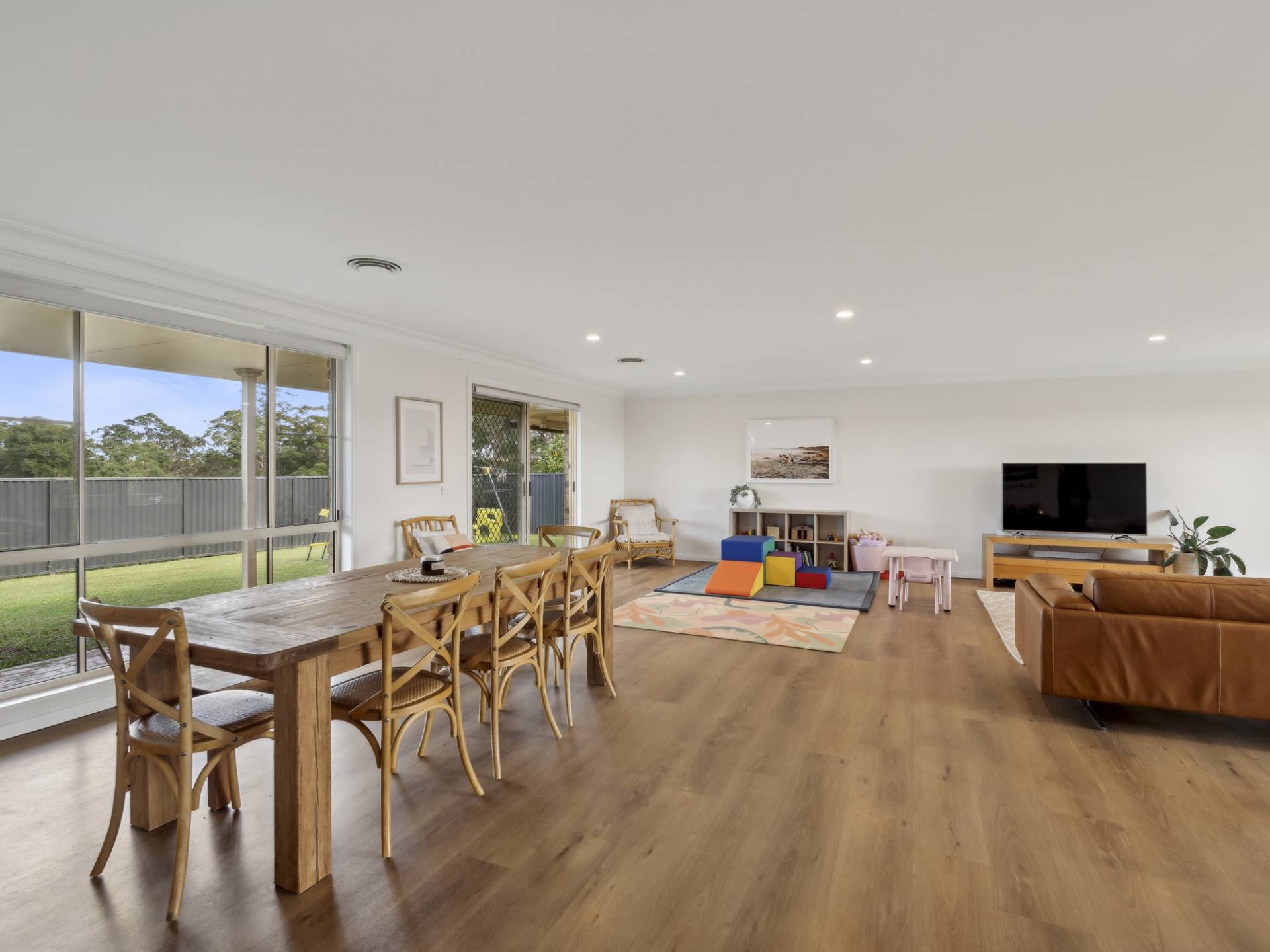 You are welcomed to your new home by entering the large foyer area, which gives you the opportunity of heading in 2 directions, off to your right you enter the entertaining living area, which is a large open plan zone, that has a combination of both dining and living spaces.