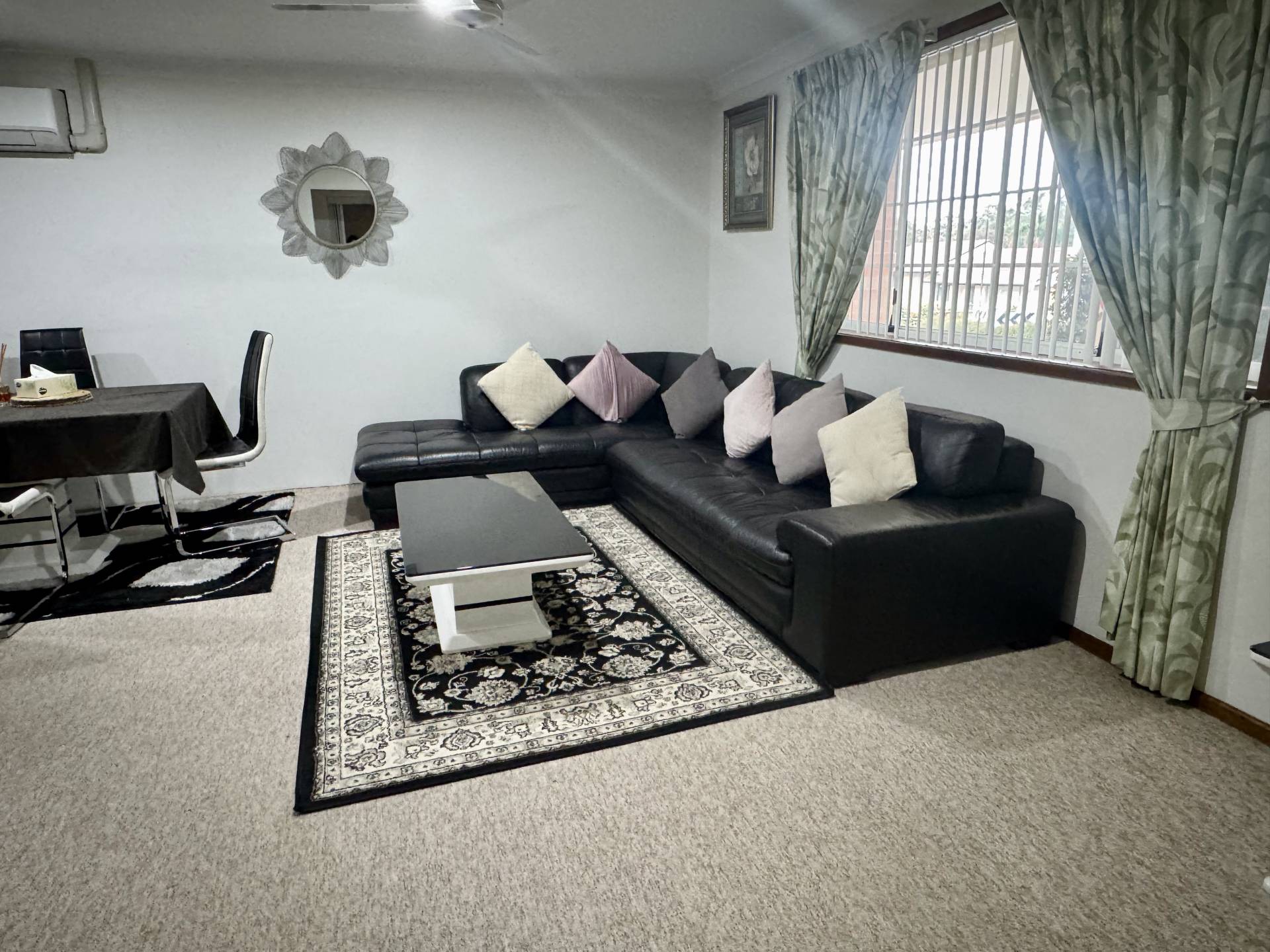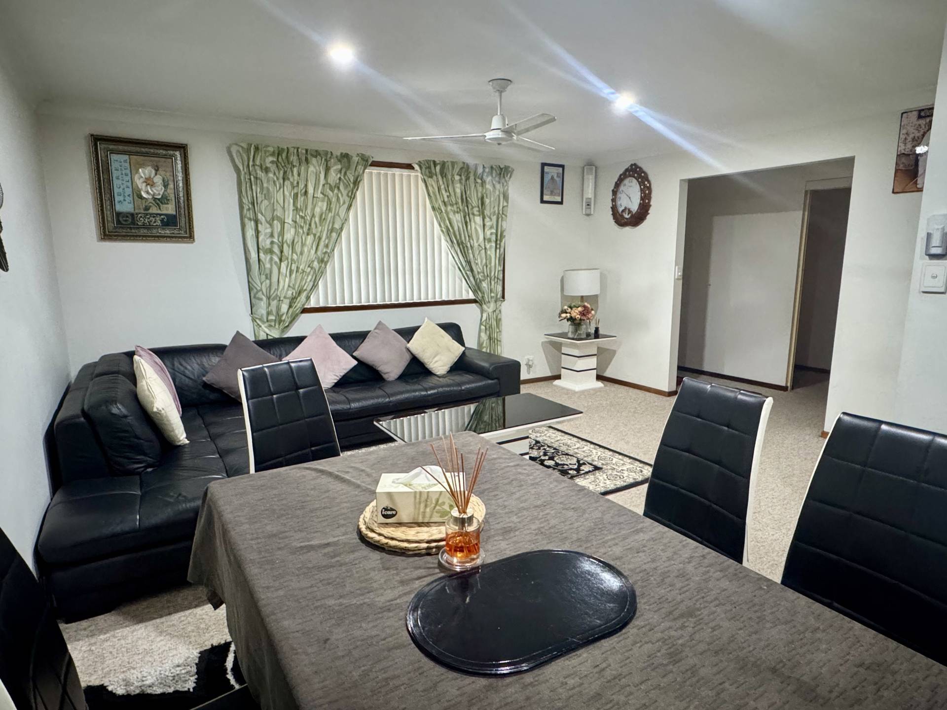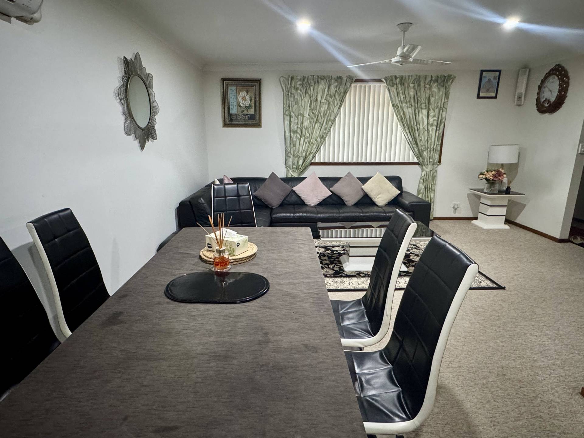 • Open-plan living and dining with A/C