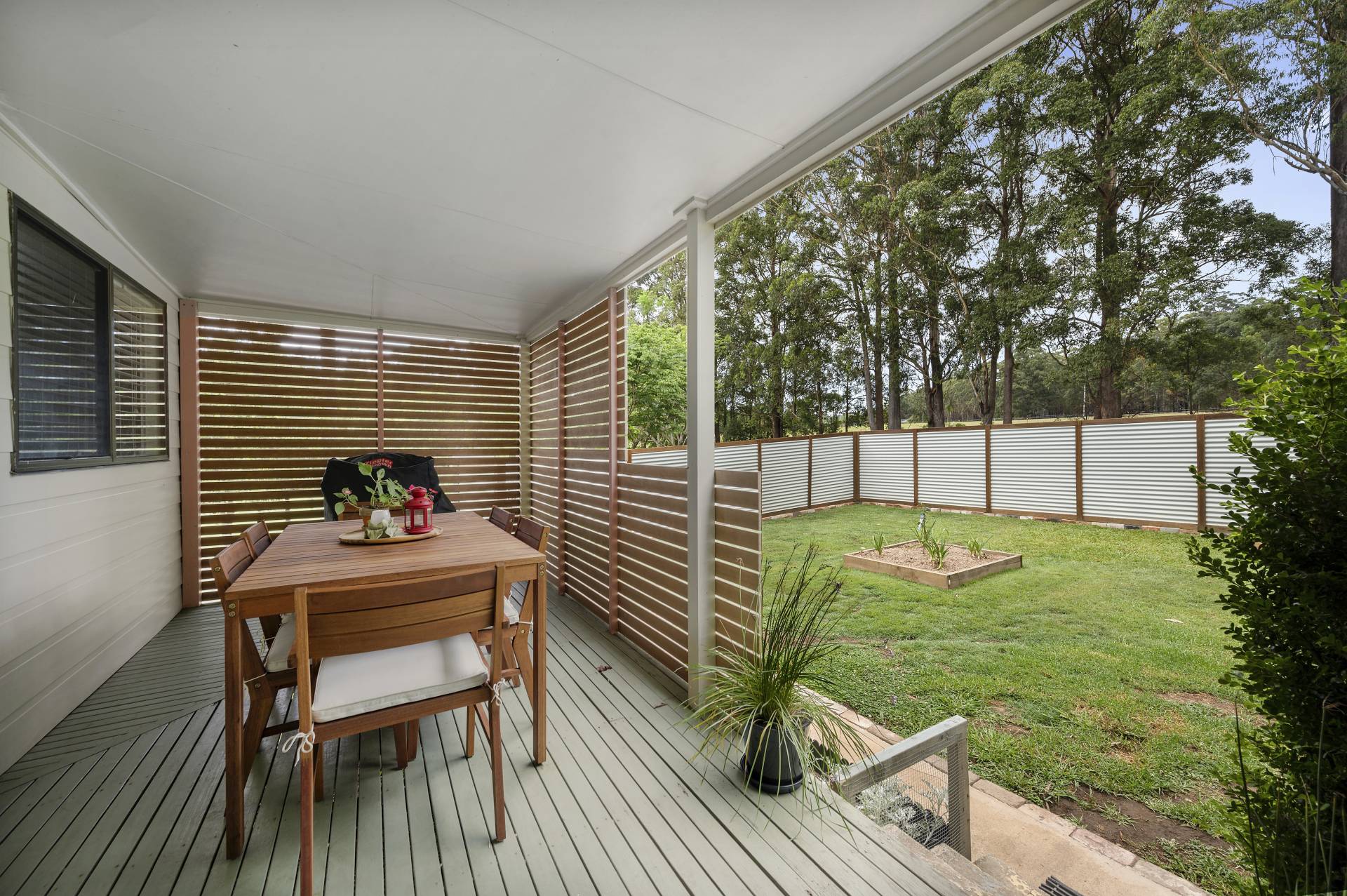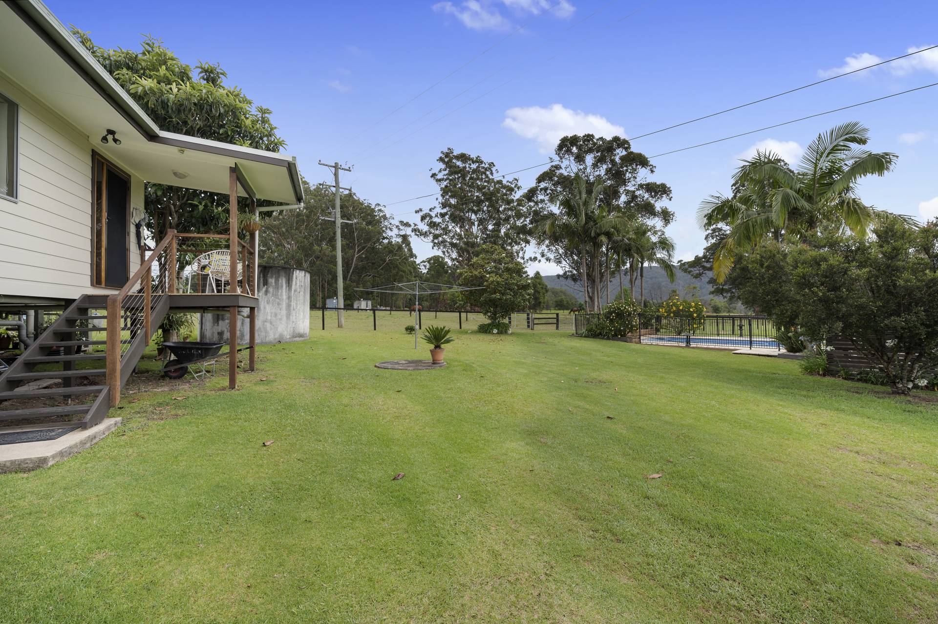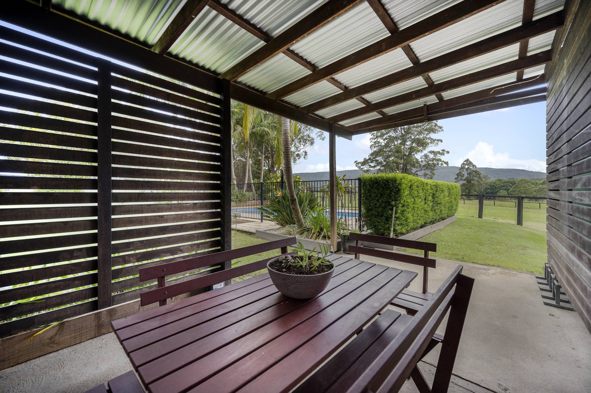 Verandah Outdoor entertainment area Fenced Fireplace in-Ground Pool Level Block Water Tank