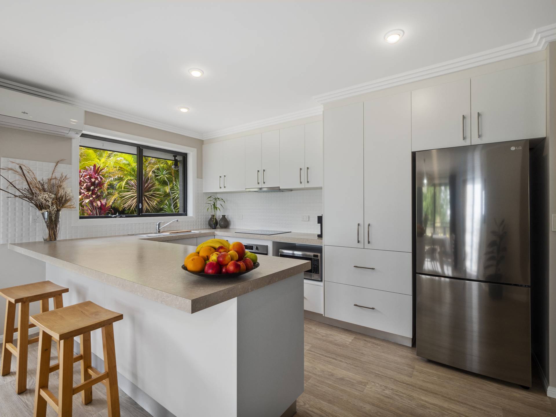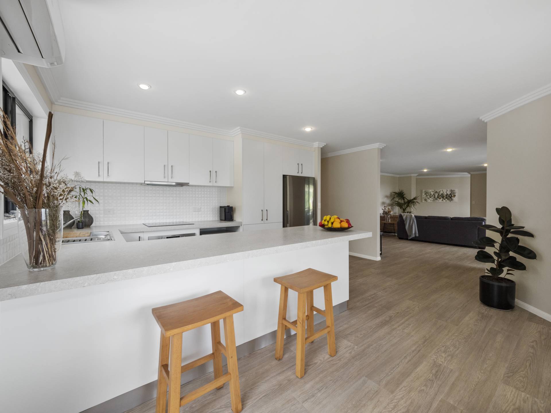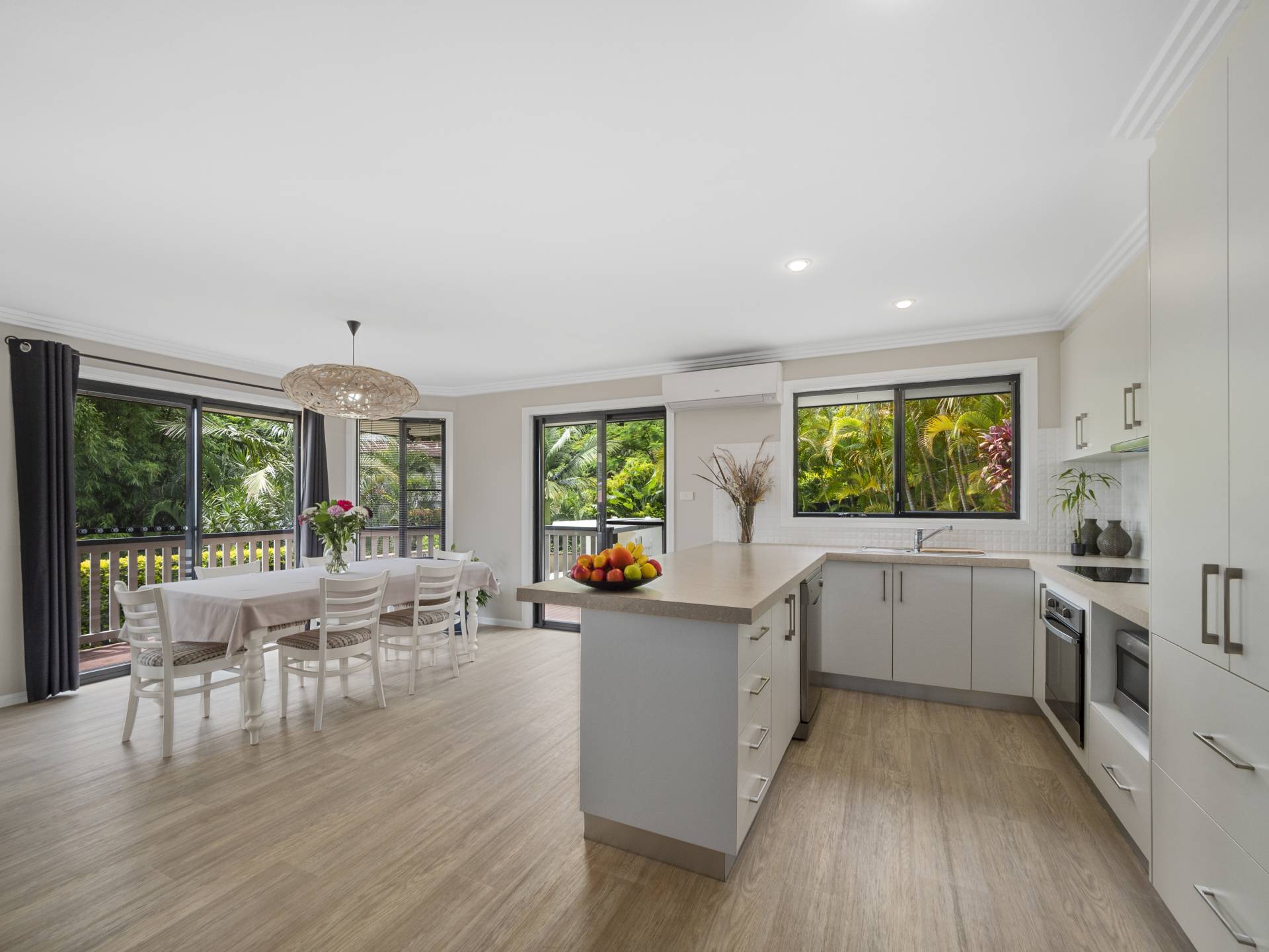 An entertainer’s delight kitchen that flows out into the dining and lounge areas ensures you do not miss out on any of the party, ample storage and bench space, induction cooktop, and under bench oven and dishwasher.