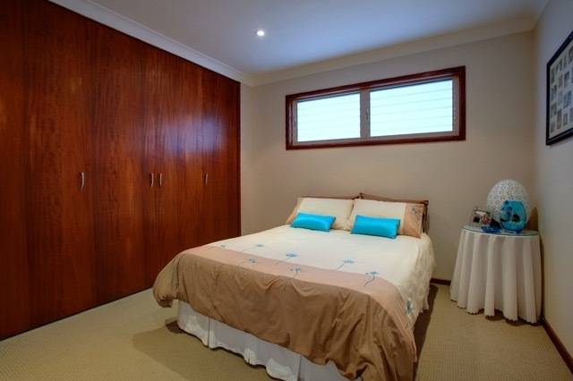 bedroom opening onto the large undercover deck with fantastic water and mountain views.